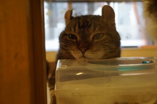 おやつの箱の上に顎のせしてるのカワイイですね~(^_^)