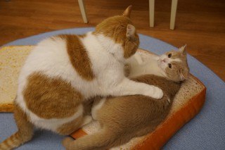 食パンの両端をもって、コロンを向こうに転がし降ろしました。