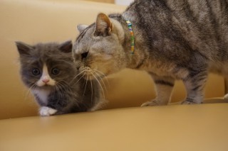 伝説の子猫係レオ様と子猫ラムネの初挨拶。