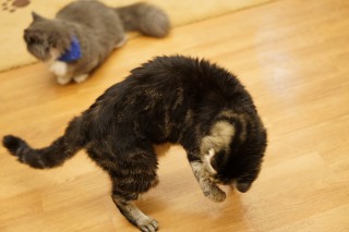 カールス….またもやカフェニャンズ中、精神年齢最年少 コロンに抜かれ….多分、ポテト、ラムネにも。“とっつぁん坊や”への道、目指せ、カワイイお爺ちゃん?(マンちゃんには、丸くならないで、長生きしてほしいです?)