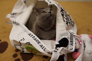 その後もお客様の帰りがけのバックに入るベルちゃん。