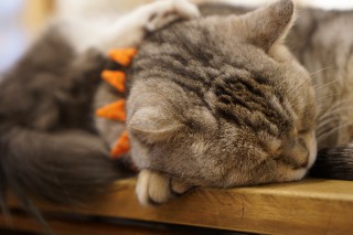 この時期、休憩室から出てきたら、よくお膝乗りしているレオさま。