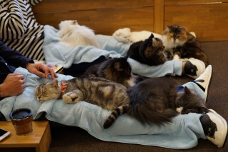 お客様のお膝の上で寝るのが仕事ならうらやましいですね。