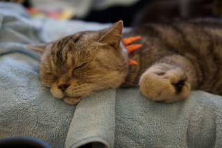 自分のしっぽを嗅ぎながら寝るレオさま。