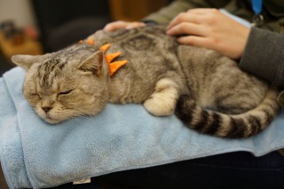 お客様のお膝の温かさを感じて連日お膝乗りをしまくるレオさまでした。