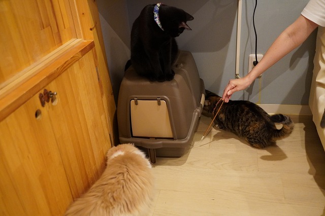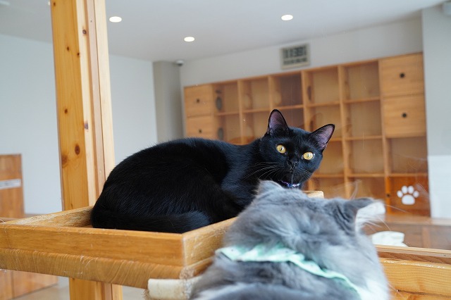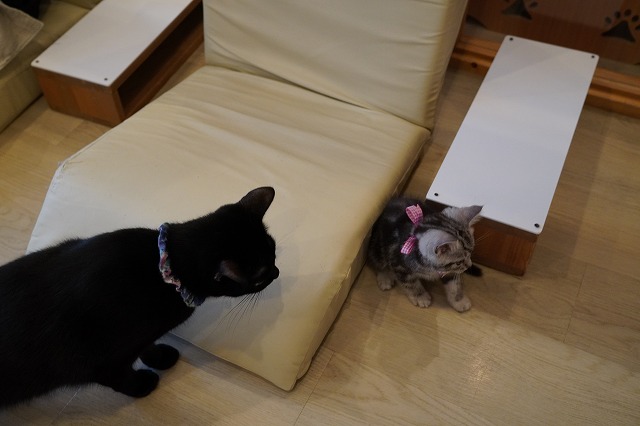 あずきちゃんが入店した時は距離を置いて見つめていました
