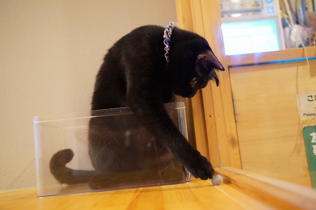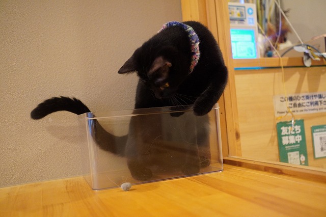 お客様に聞くと猫じゃらしで遊んでいて、ちょっと休憩に乗ったようです