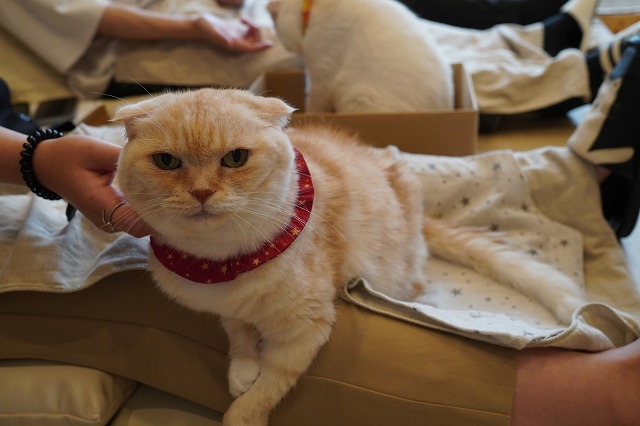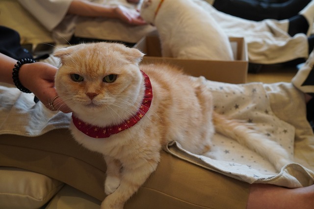 おひざ乗りされているお客様も反対側から頬をなでなで~