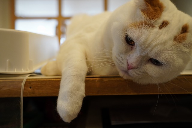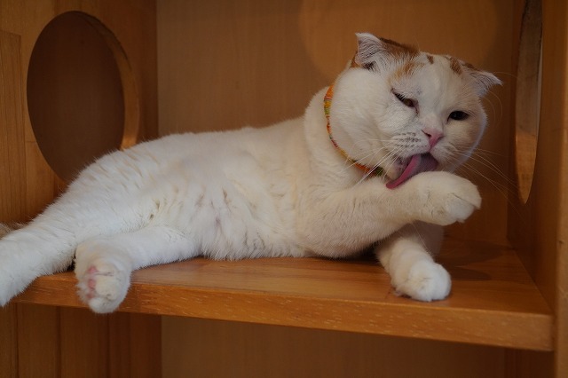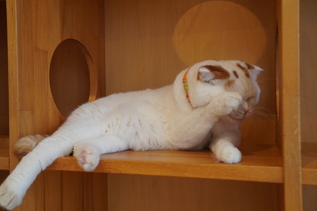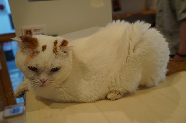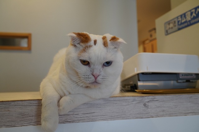 他ニャンズのブラッシングが受付付近で始まると受付に上ってきて順番を待ったりします