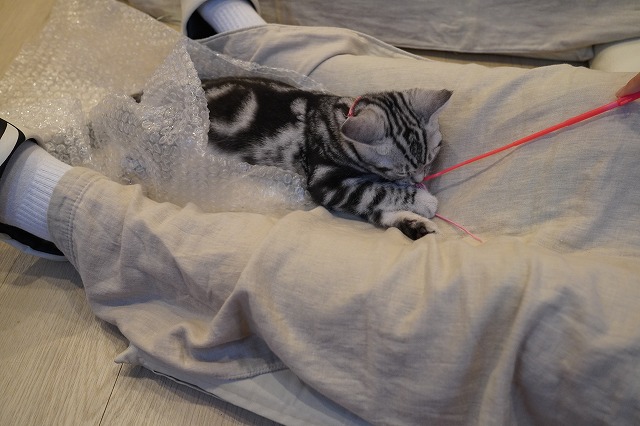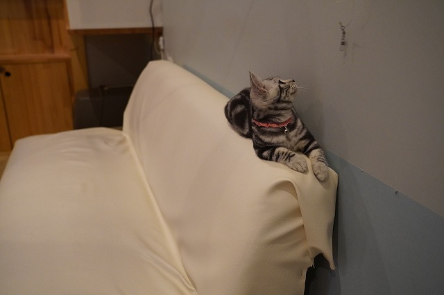 その後、休憩した後ソファーで遊ぶあずきちゃん