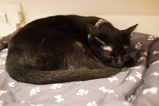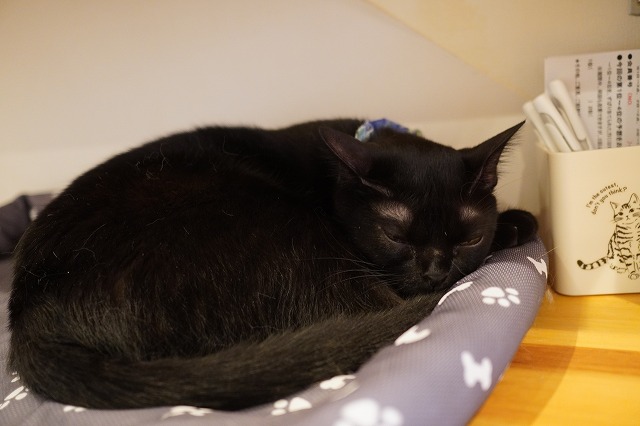 おひざ乗りしていましたが、カウンターで寝ることが多いうにくん