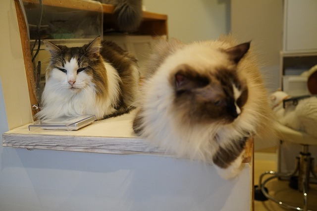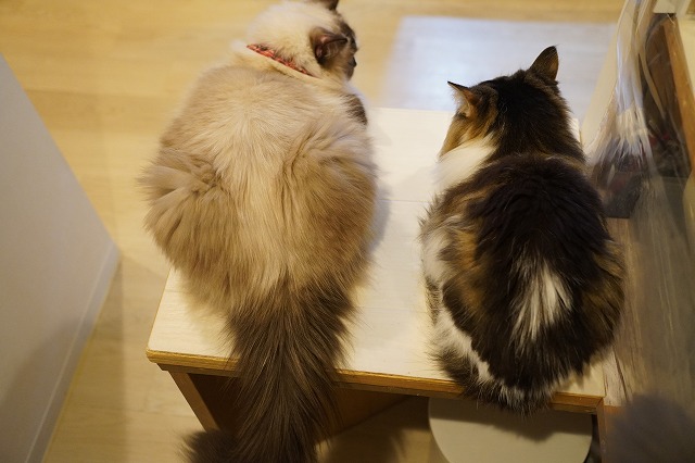 ラグドールのちまきちゃんと仲良く並ぶボンボンちゃん