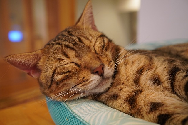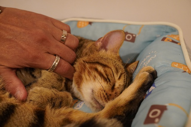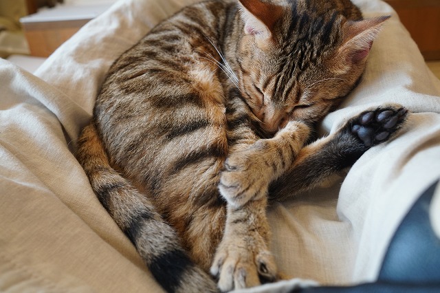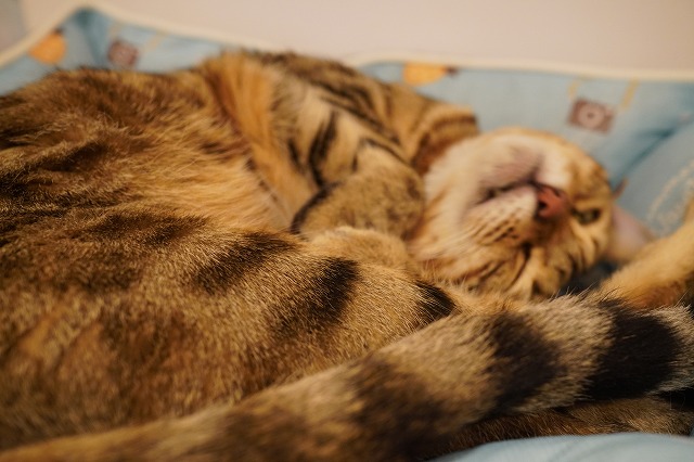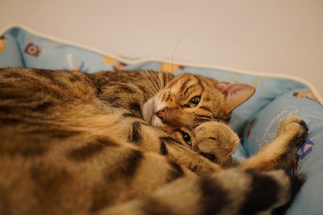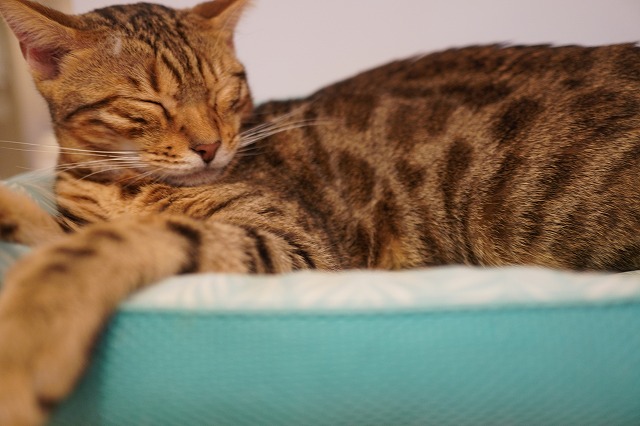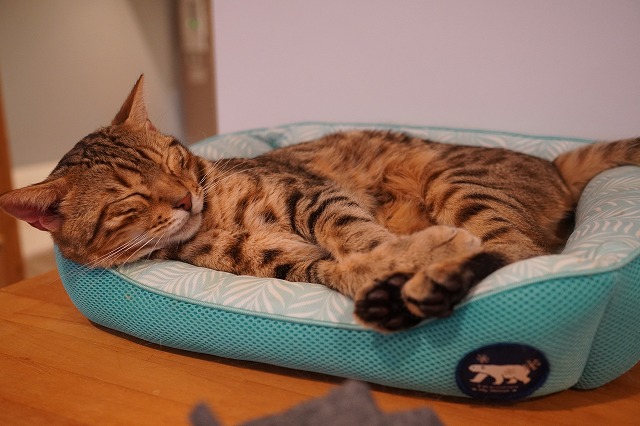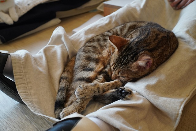 眠たくなった時にお気に入りのベットのような形のおひざがあれば乗りに行きます