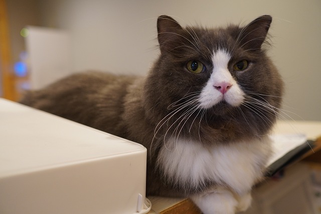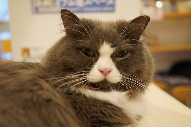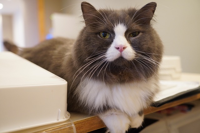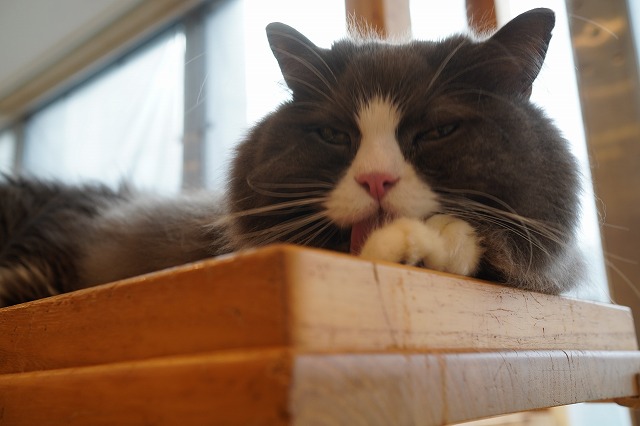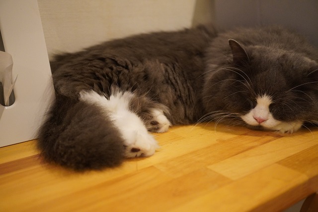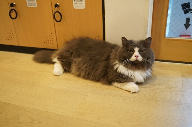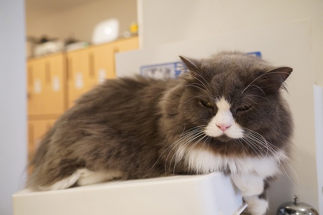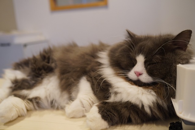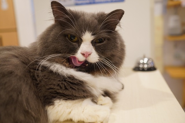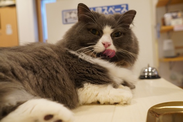ぺろり~。受付で寝ていると新規のお客様に「本物?」と言われるラムネくん