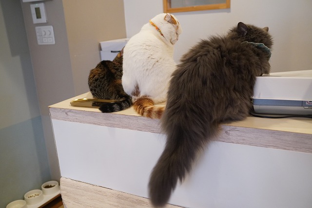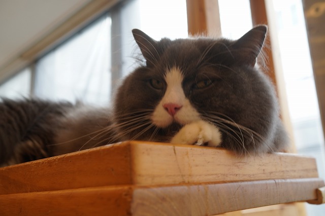 「なんでパンチするんだよ~。」と、その後レジ上に上って避難したラムネくん