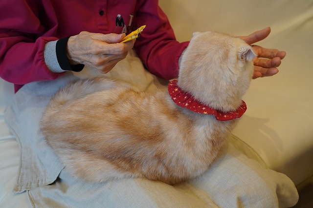 この態勢になって頂くとくるみちゃんをおひざへご案内できます