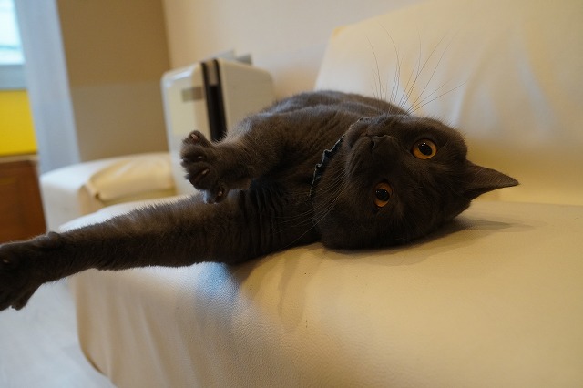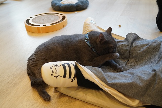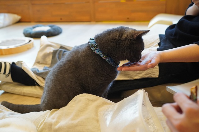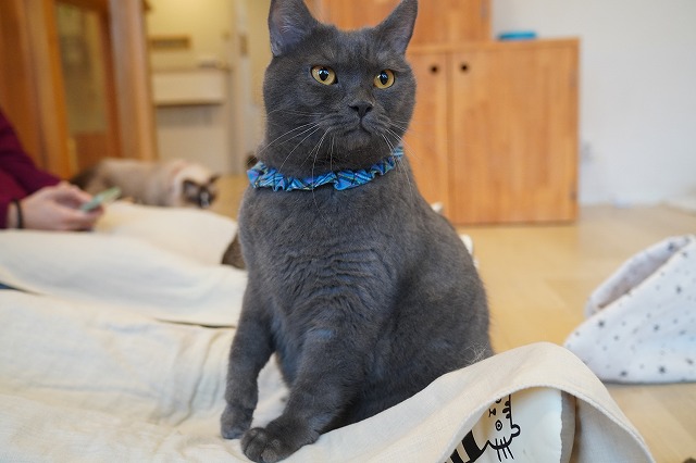 その後も別のお客様のおひざでくつろぐトリュフくん