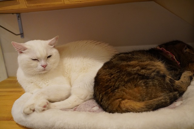 昨日はざらめちゃんの横にお邪魔して寝るミルクんでした