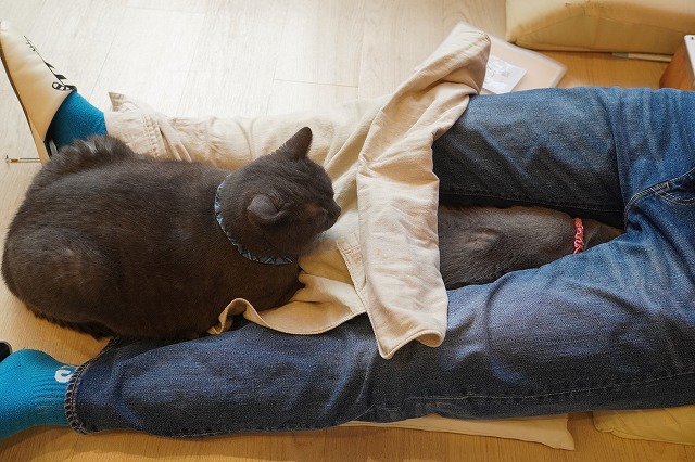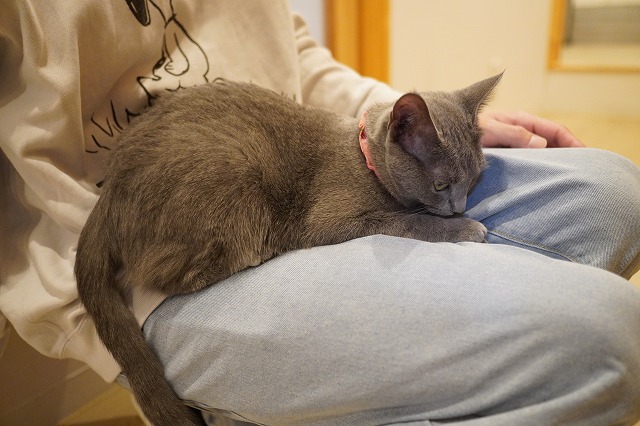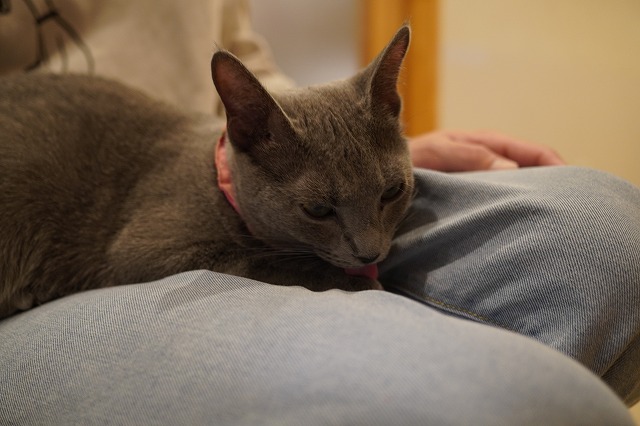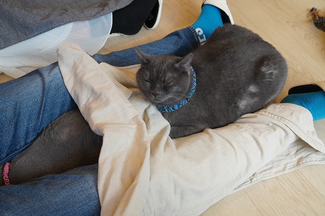 この日は別のお客様の股の間に潜り込んで寝ていたローズちゃん