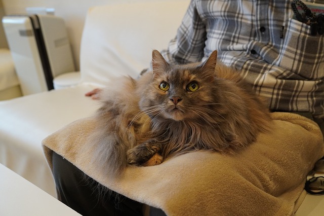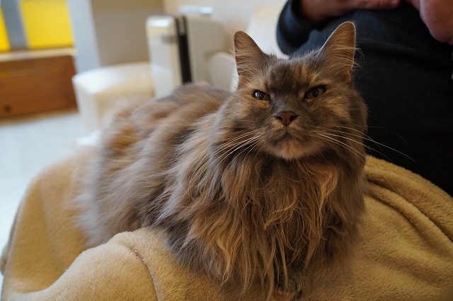 こちらのお客様が気に入ったようで、一度降りてからも再びおひざに乗ったこむぎちゃんでした