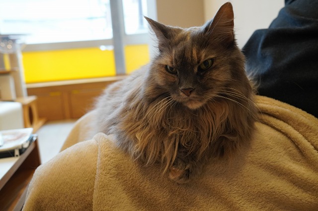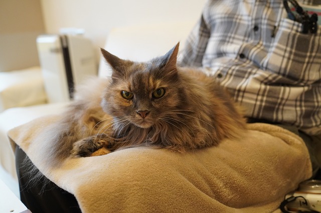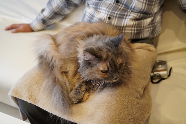 この日はおひざ乗りせずに眠るこむぎちゃん