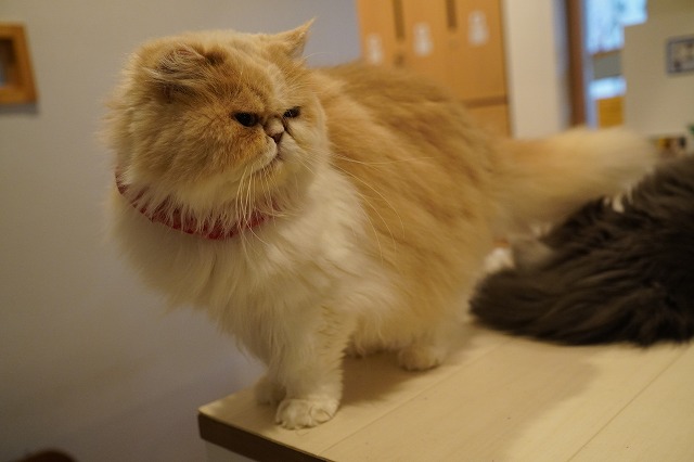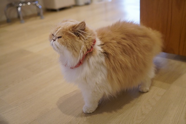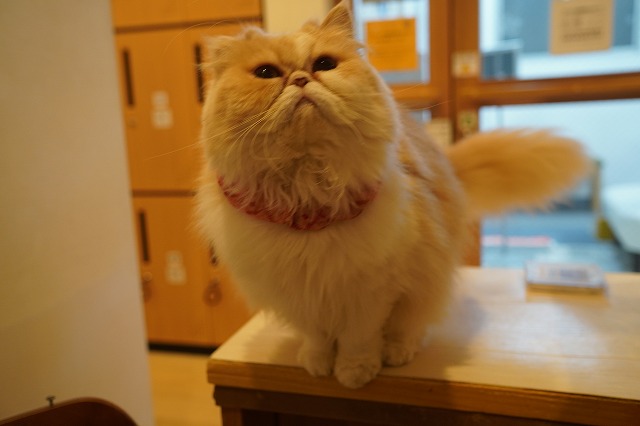 お腹が空いたのか、喉が渇いたのか、受付付近まで出動してお店内の様子をうかがってます