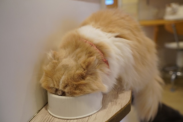受付横の床上台にご飯コーナーがあるのですが、受付上で食べたいもなかちゃん