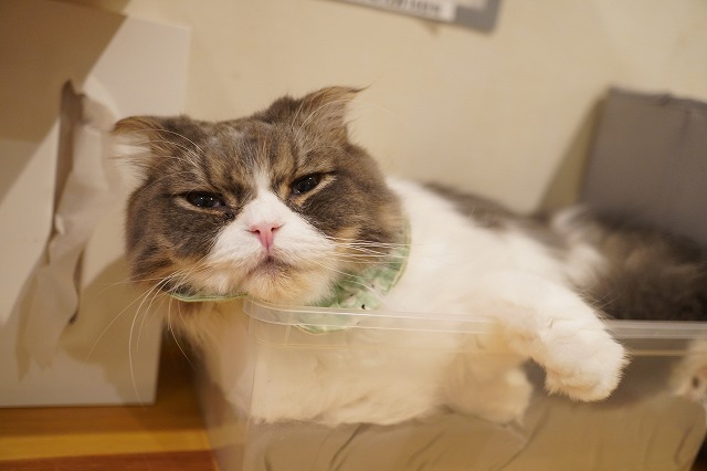 いつもはまったり箱寝のミントくんでした