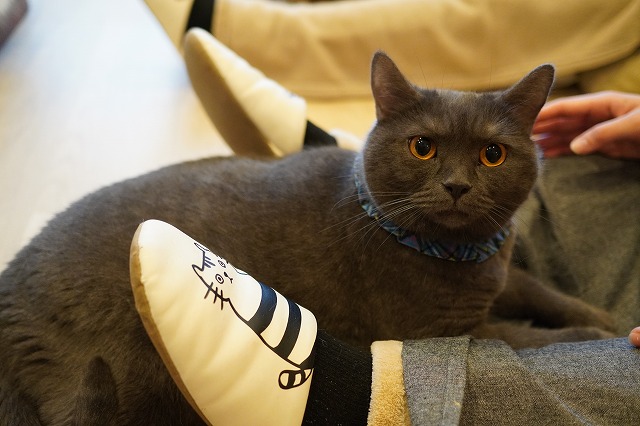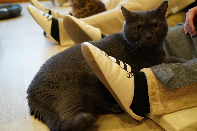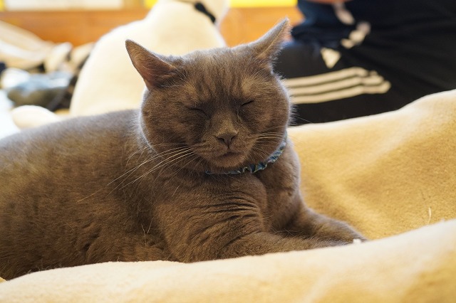 お客様のおひざを何となく居場所と認識しているトリュフくん