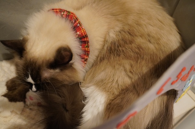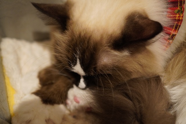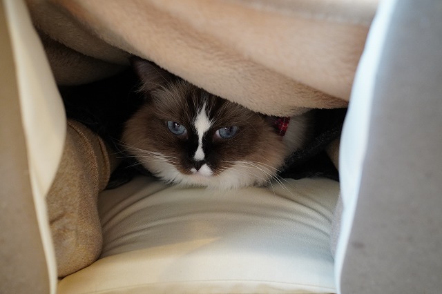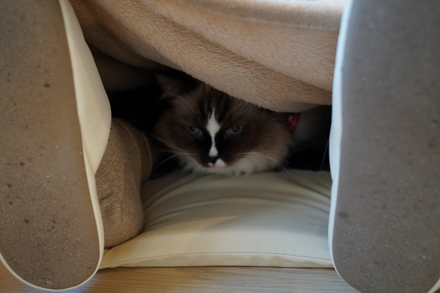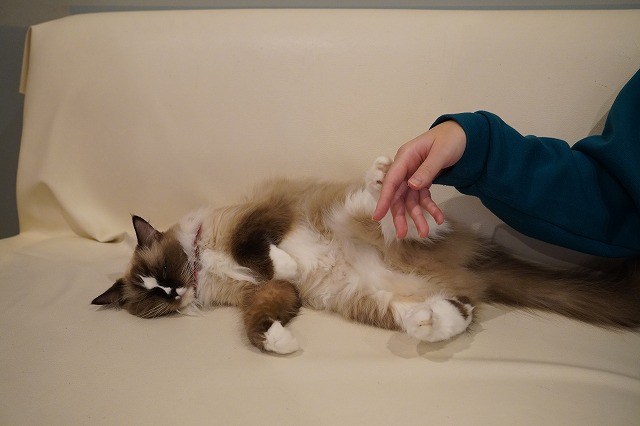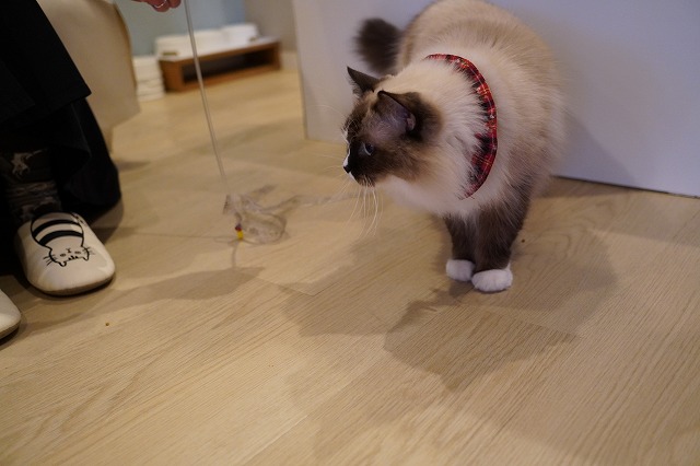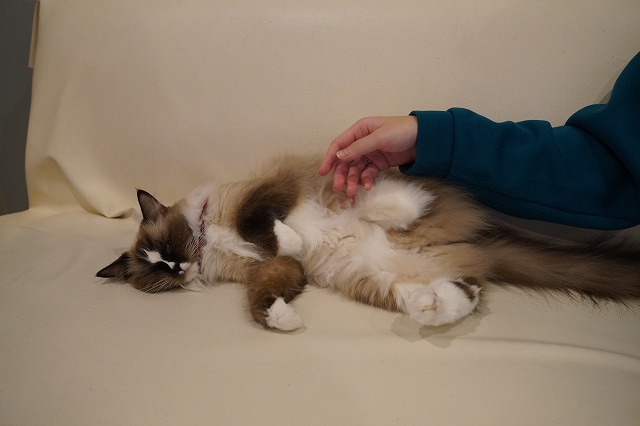いつのまにかお客様の足間に入っていたちまきちゃん
