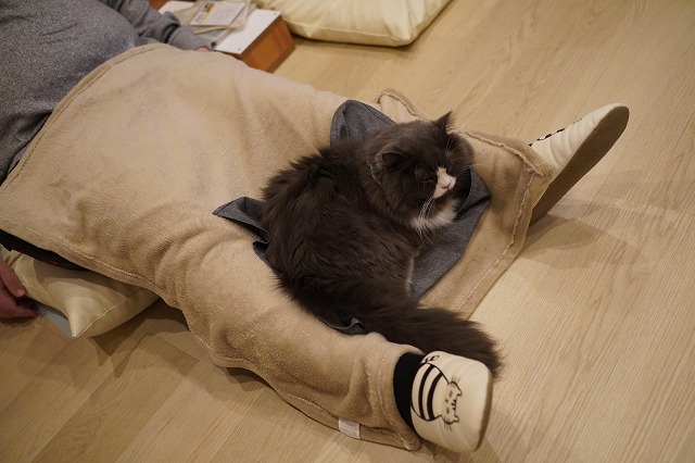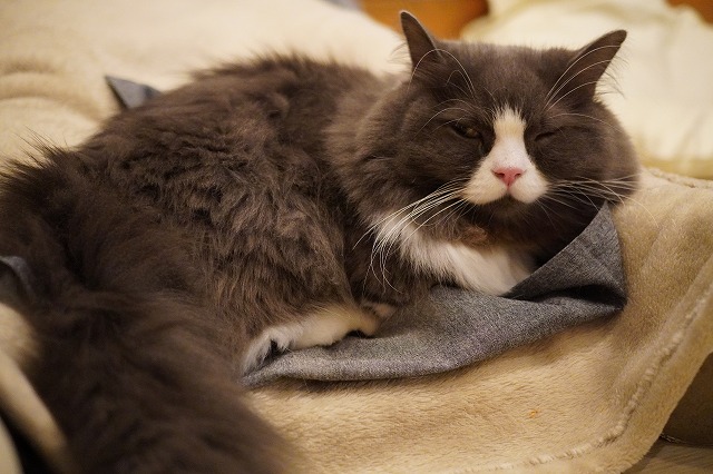 眠い時にグレーのシートで乗ってくれます