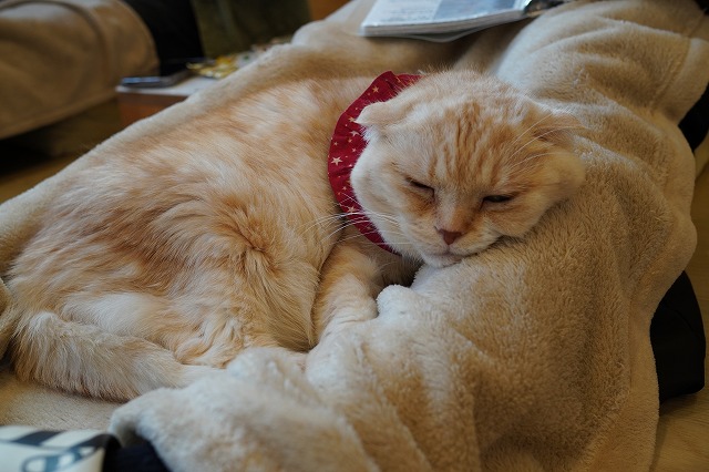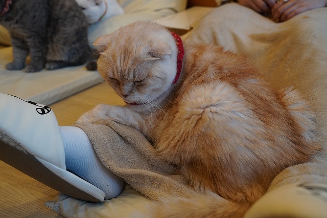 昨日もお客様のおひざで暖を取るくるみちゃんでした