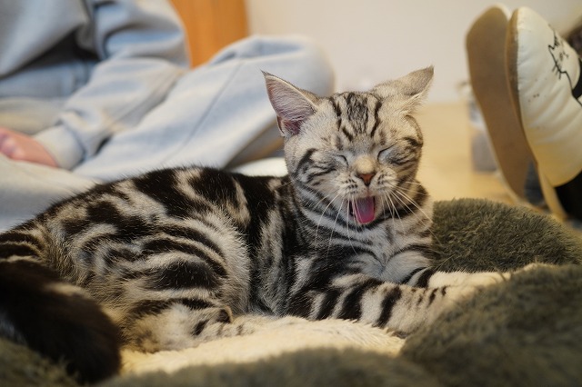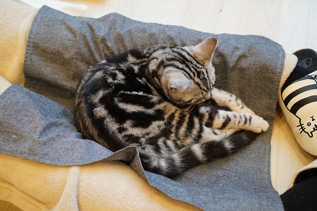 眠い時はお客様の足間の温かさを覚えたあずきちゃんでした