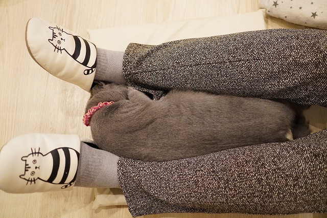 横のもなかちゃんの顔の場所がポカポカと温かい場所です。
