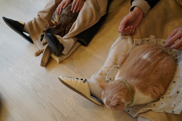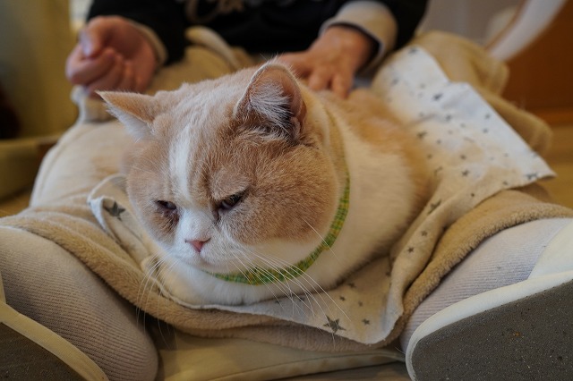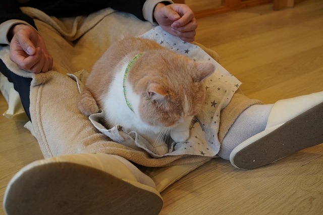 お客様のおひざに落ち着く事に決めたコロン君。