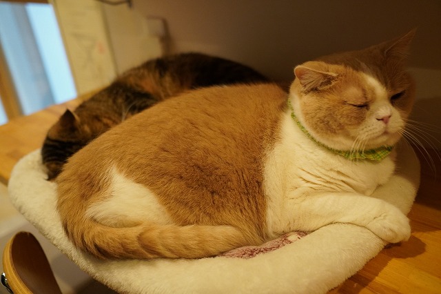 眠たい時には寝るのが猫だ!とコロン君。