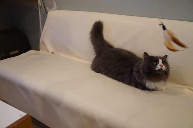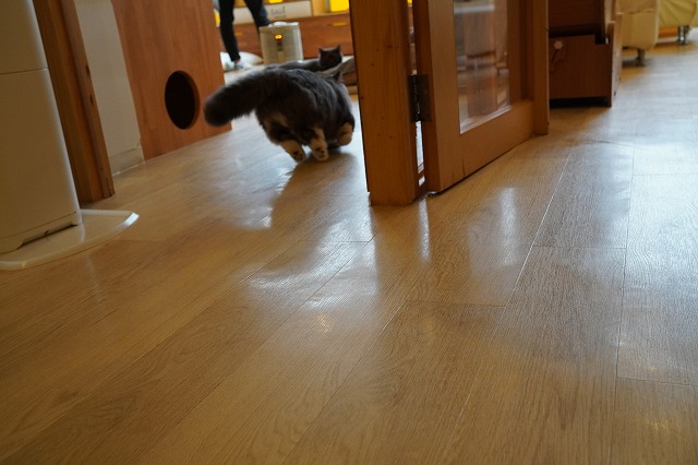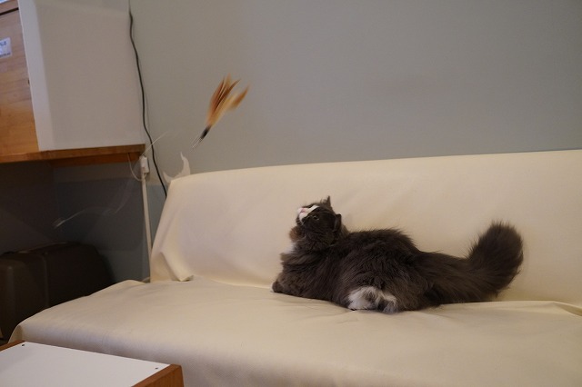 遊んだ勢いで、そのまま座椅子ルームへダッシュで走り去ったラムネくん。