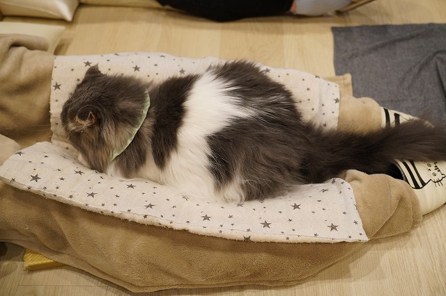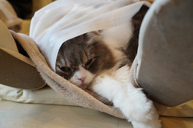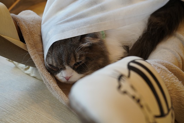 正月明け、座椅子ルームの爪とぎでマフィンくんとまったり中。