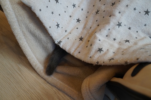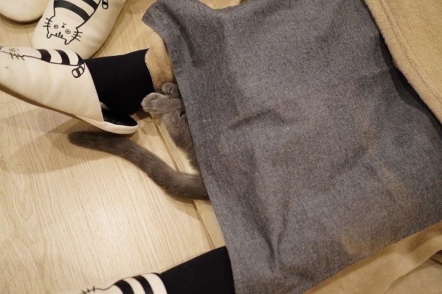 お客様の足間トンネルから出ている尻尾はローズちゃんです。