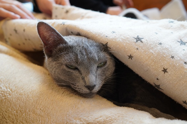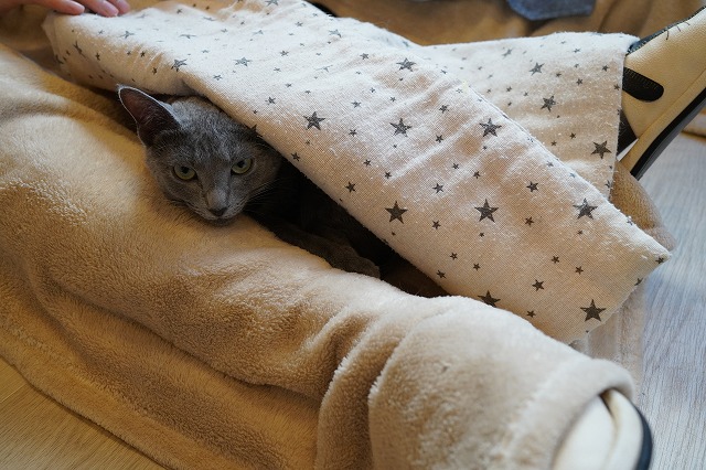 カメラを見つめたものの人肌の温かさで眠たいローズちゃん。