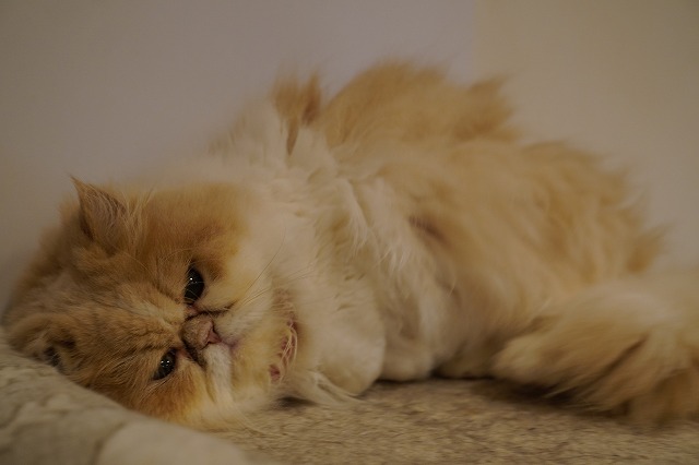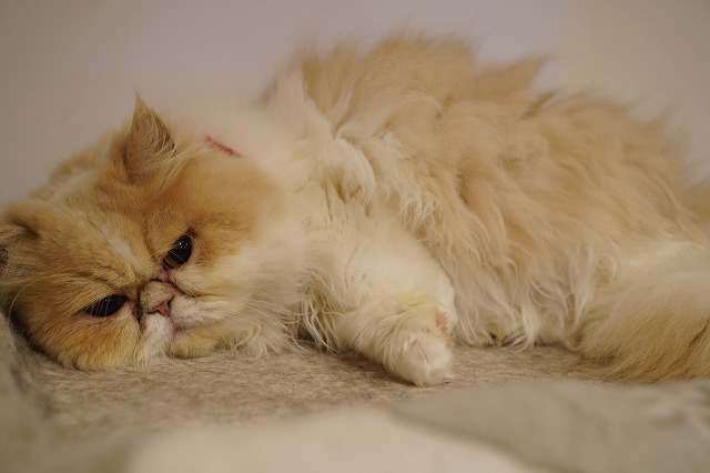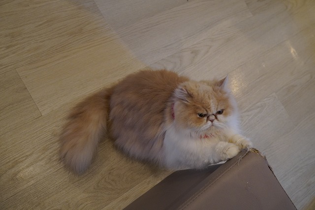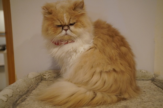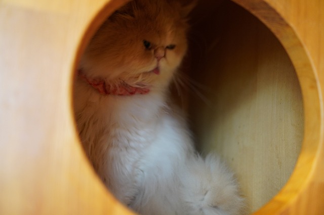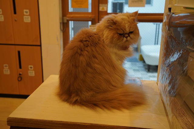 夕方、お客様が少なくなると棚の上のマットで過ごします。