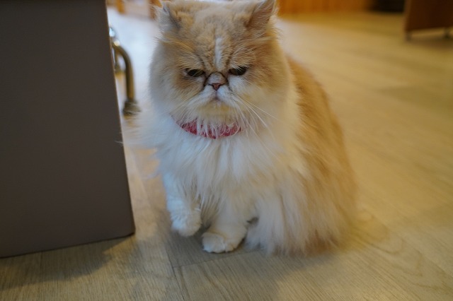 お腹が空くと休憩室から出て来て受付辺りで待っています。
