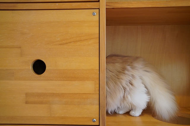 別の日、めすらしく猫棚の休憩室に入るもなかちゃん