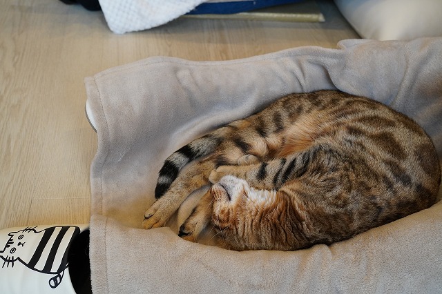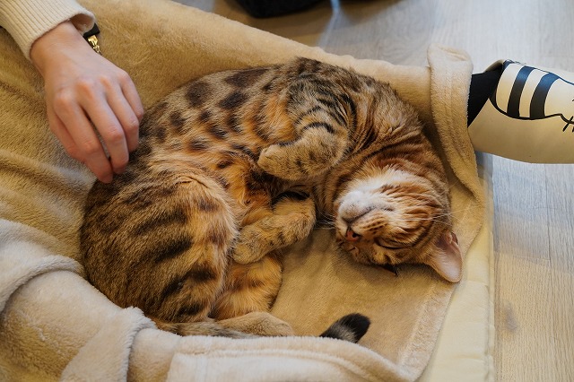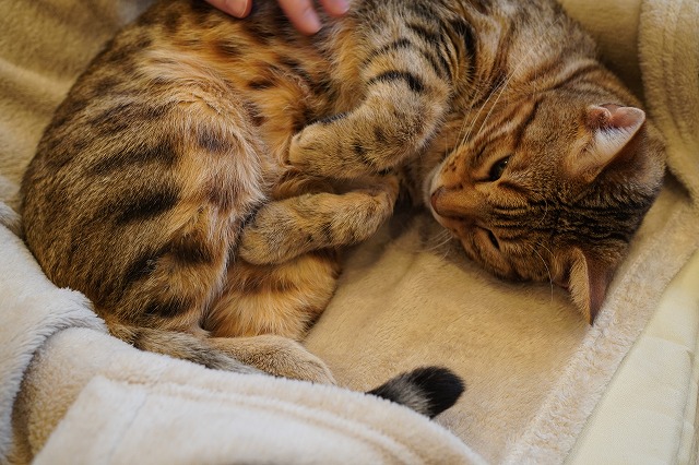 薄っすら目をあけて気持ちよく撫でてもらう金時くんでした。