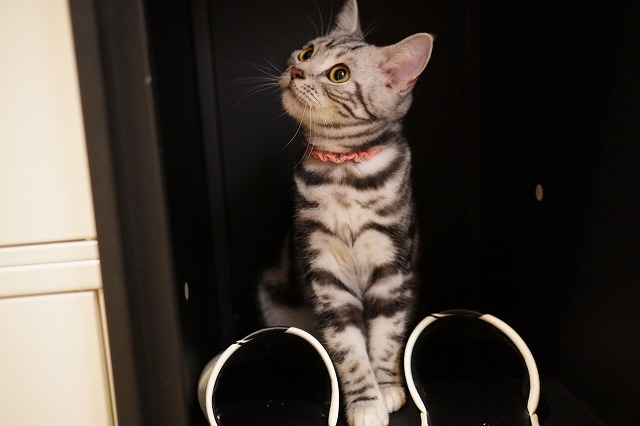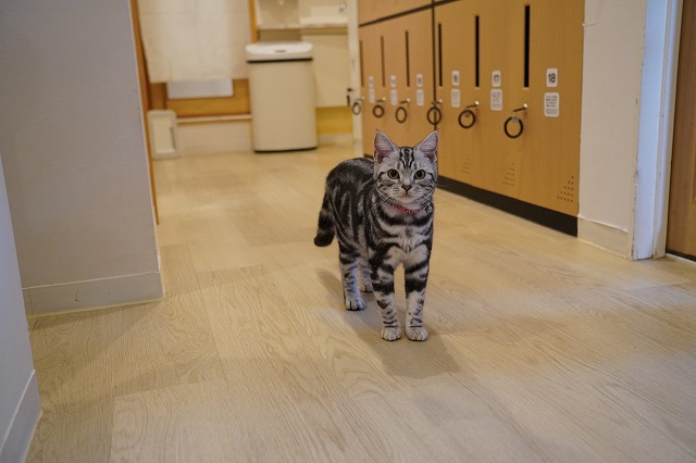 お客様が荷物を取り出した隙にロッカーに入り込むあずきちゃん。