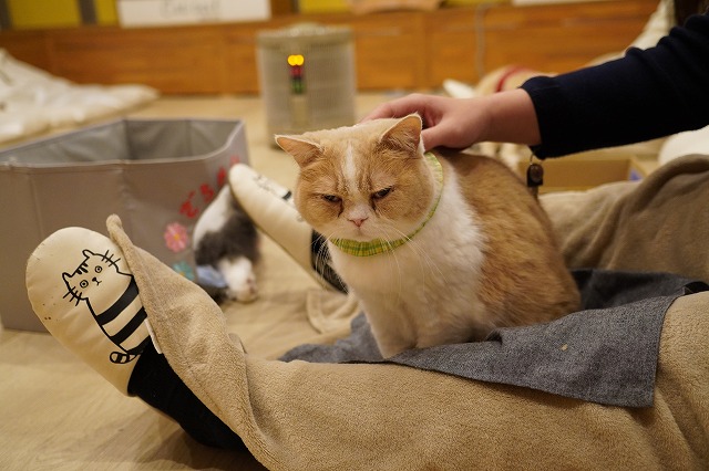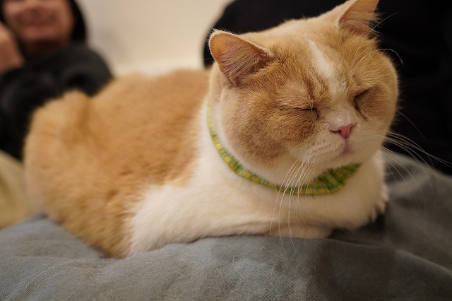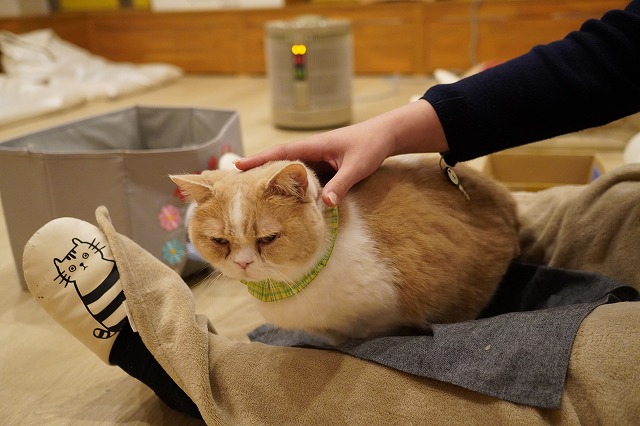 落ち着こうとしましたが、お客様になでなでされたので、どうしようか考えているコロン君。