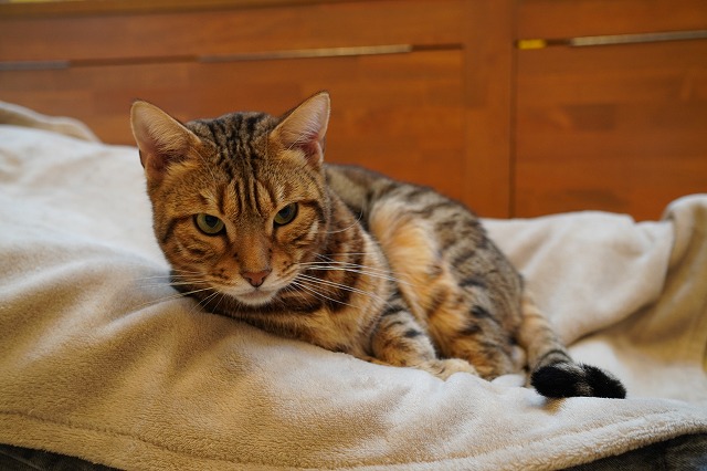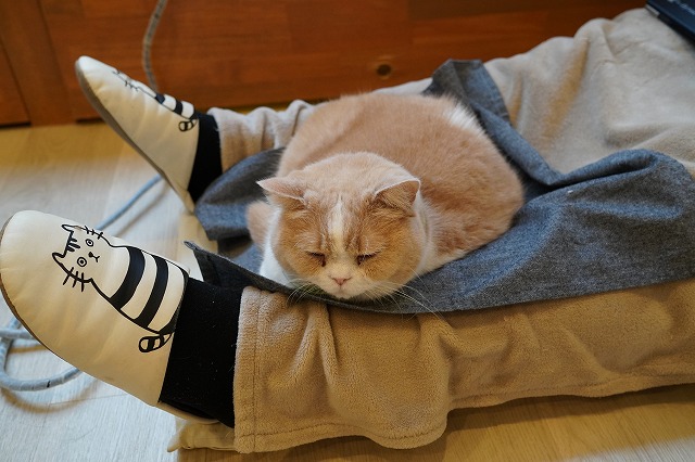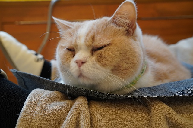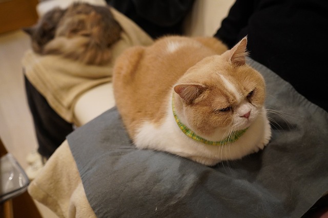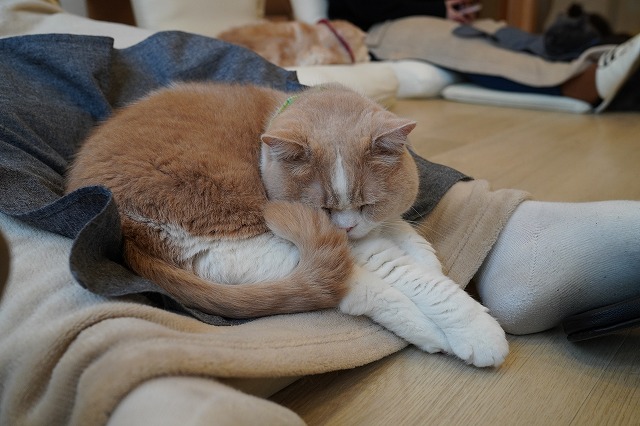 翌日、座椅子ルームでおひざに乗るコロン君。
