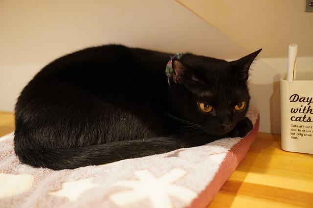 この日はカウンターのマットでじっと待機するうにくんでした。