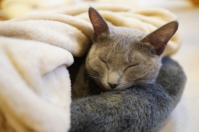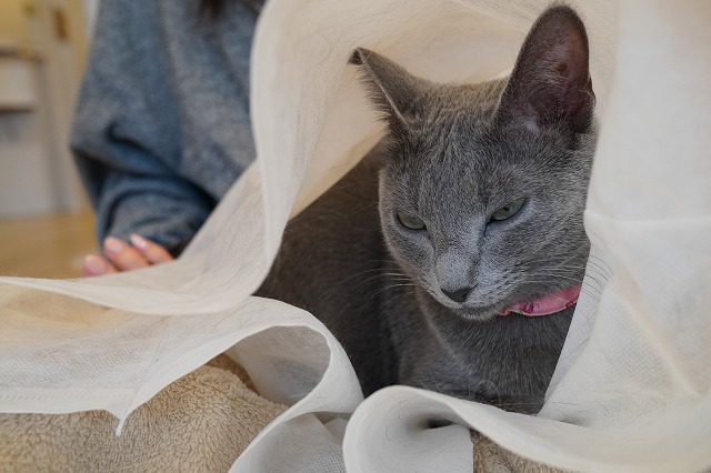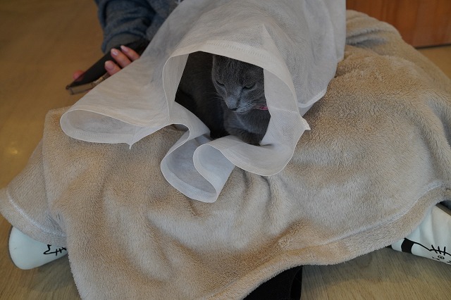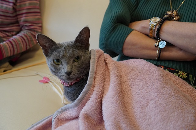 その翌日、寝ていたらお客様にひざ掛けをかけて頂いたローズちゃん。