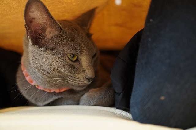 ソファーでおひざ乗りするローズちゃん。